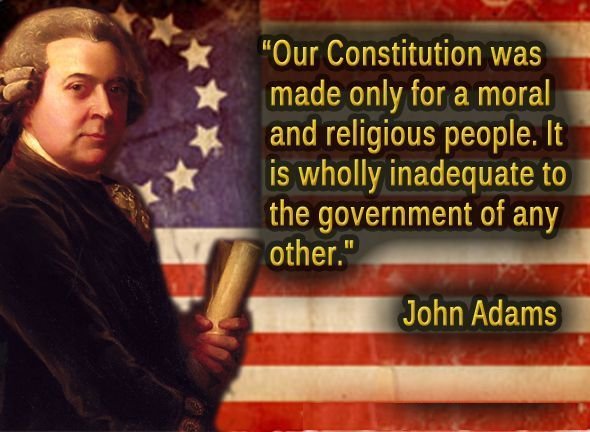 In 1798 President John Adams said, “Our Constitution was made only for a moral and religious people.” President Adams was speaking to the morality of the citizens of this great country. He was not requiring church membership, but he was reminding the militia members gathered that day, that our Constitution, and the rights and liberties guaranteed therein, only works when we live according to certain moral and righteous principles. And those unalienable rights and eternal moral principles come from a higher authority, God, not man, not government, not a legislature, and not a President.