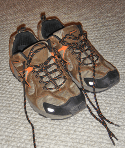 tennis shoes. Ooooppppssssss……something wrong here! And my toes were way further into the tennis shoes than my boots.