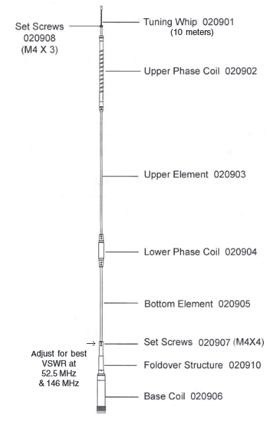 10 meters 28-29.7 MHz 2.1 dBi 1/4