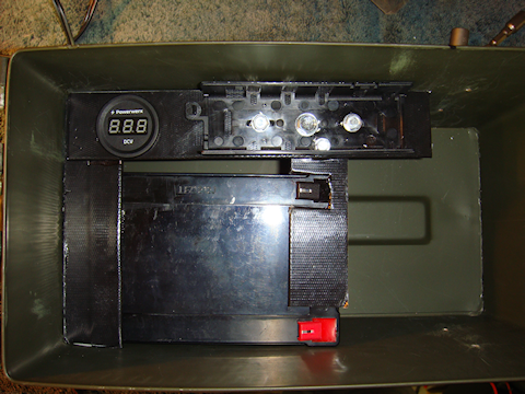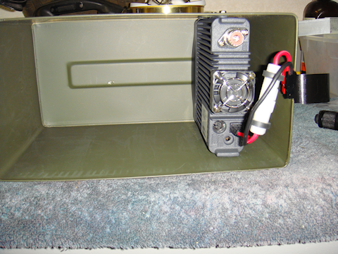 My main concern was the limited space and heat generation. I wasn’t worried about the battery orientation because it is a sealed battery and won’t (shouldn’t) leak. Since the box will spend most of its life sitting upright in storage like a normal ammo can, I decided to orient the battery installation to be upright when the ammo box was in its normal upright position. When the radio unit is operational the ammo box will be sitting on its side and so will the battery. That shouldn’t pose any problem at all.