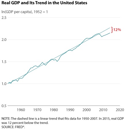 - Actual GDP is 12% below where it would normally be, let alone any net growth.