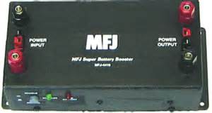 MFJ Enterprises Inc. MFJ-4416B BATTERY VOLTAGE BOOSTER. The MFJ-4416 Super Battery Booster eliminates low voltage problems by boosting input voltages as low as 9 volts up to the desired 13.8 volts. And it does so at up to 25 amps peak with a typical efficiency of close to 90%. It is compact at just 7 3/4W x 4H x 2 1/8D” and lightweight at 1.3 lbs. And the MFJ-4416 Super Battery Booster is designed to be rugged, reliable, and easy to use.