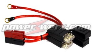 To make this connection I started with a fused connector from Powerwerx – MAXI Fuse Holders with Ring terminals and 75 Amp Powerpole Connectors.
