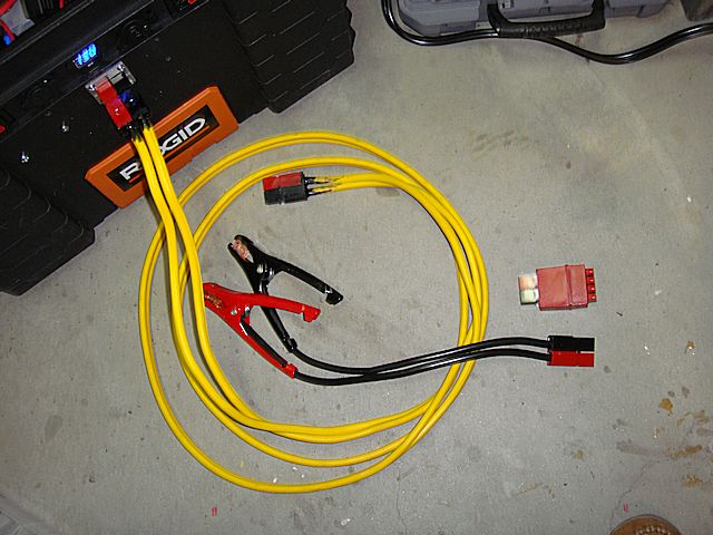 For my wire I followed my own advice…I went to Walmart and purchased a set of 12’ booster cables in 8 gauge wire. Cheaper than buying the equivalent wire and it comes with much heavier-duty protective insulation. I snipped off the clamps, installed the PP75 connectors and my “extension cord” was good to go.