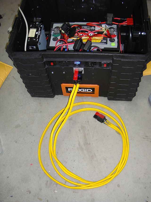 Power Box with 75amp extension cord plus the options of battery clamps and the Powerwerx PS-75/45-4 power distribution block.