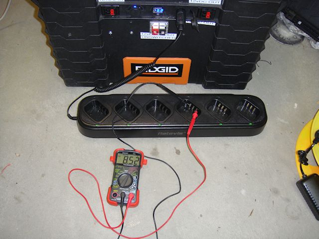 When I plugged the 12vDC power cable from the portable power box into the charger base. No smoke, no pop, no tripped circuit breakers…it was looking really good. All the lights on the charger base were on just like they were when I was running the charger base off regular house current.