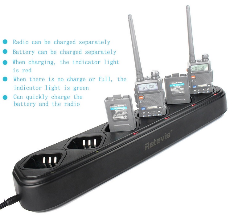 If you are running multiple radios for your family, group, church, etc. you might want to take a serious look at the Retivis Universal Charger for Baofeng radios. This is a great solution for the right application. I love it!