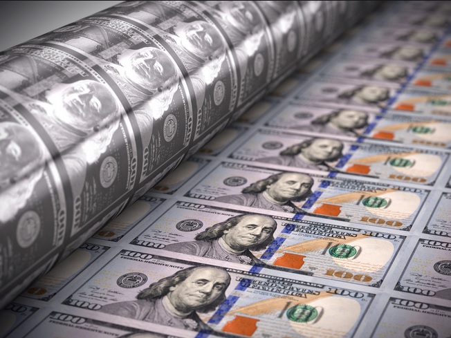 on top of a regular budget deficit of over a trillion dollars. - If you are keeping track…the US federal government now prints almost 60cents of every dollar it spends. Yes, that means they are simply making up money. Yup…funny money flying off the printing presses!