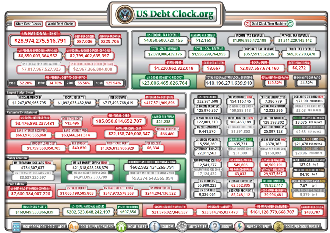The last President to have a balanced budget was Clinton. And, no US president since 1930 has lowered the national debt…that’s nearly 100 years of increasing national debt!! And that debt now sits just shy of $30,000,000,000,000…30 TRILLION DOLLARS!!