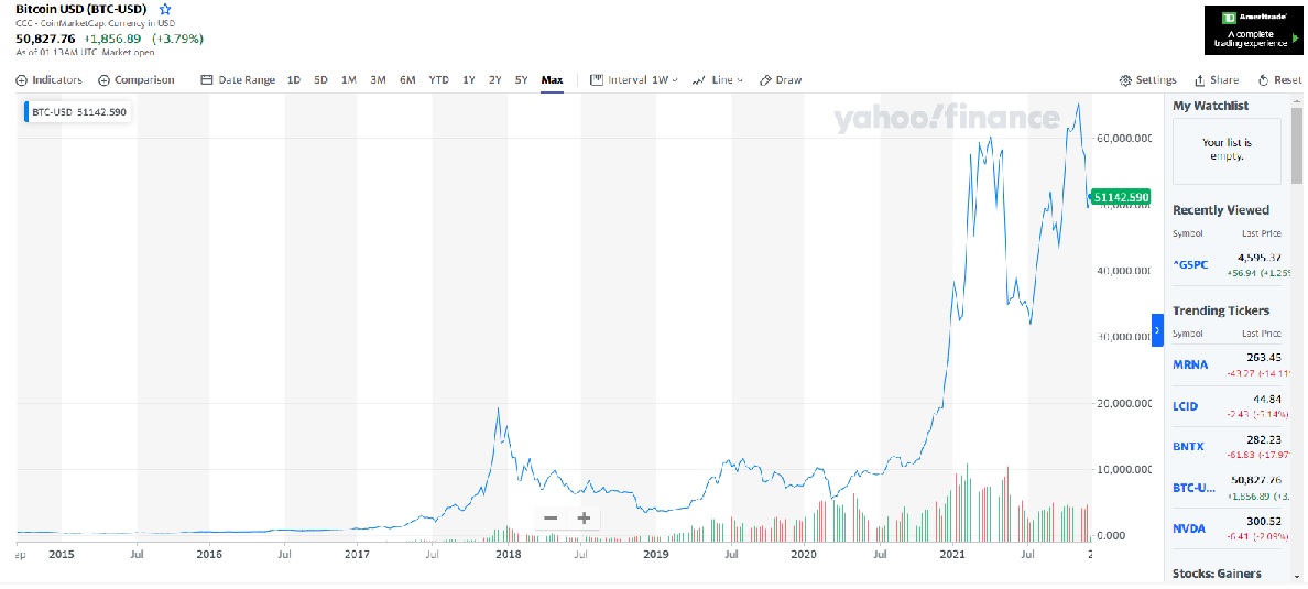 Let’s look at the historical price chart of Bitcoin to gain the big picture…