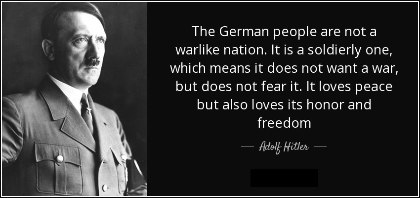 The American people are not a warlike nation. The United States is a soldierly one, which means it does not want a war, but does not fear it. America loves peace but also loves its honor and freedom.