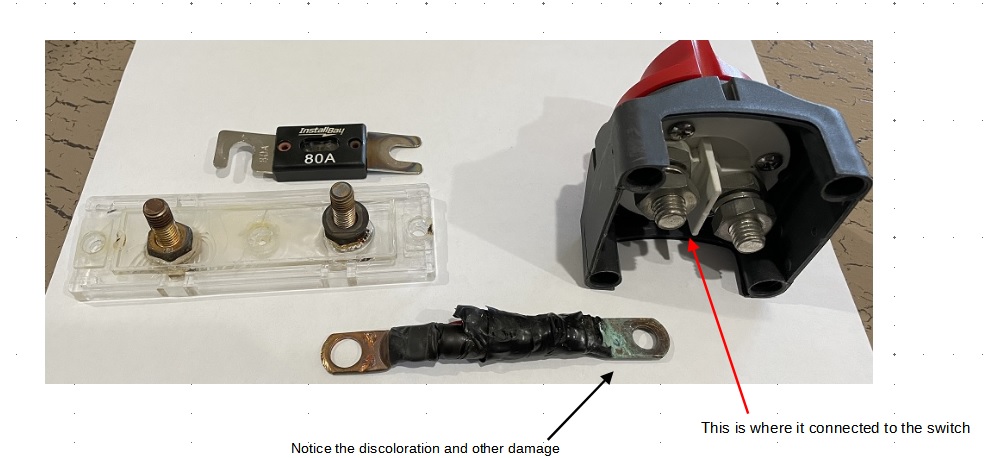 Last November I wrote a ‘Tip’ article regarding a fuse of mine that heated up and I had to replace it. Along the way I noticed that the problem was the connections on the fuse holder were not tight. I fixed it and didn’t think another thing of it until I was upgrading our solar system this past spring. Then I found this…