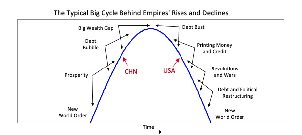 Modern empires take about 100 – 150 years to crash from their peaks. But, those time estimates are shortening as history goes on. I think they are accelerating based on improved communication and quicker transportation for the most part. The