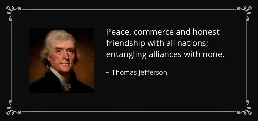 “It is our true policy to steer clear of permanent alliance with any portion of the foreign world.”