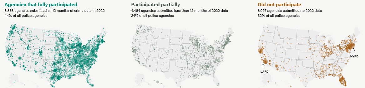 - Literally dozens and dozens of law enforcement agencies from all around the country didn’t report any data to be used in the FBI crime report.Many others only reported partial crimes stats.
