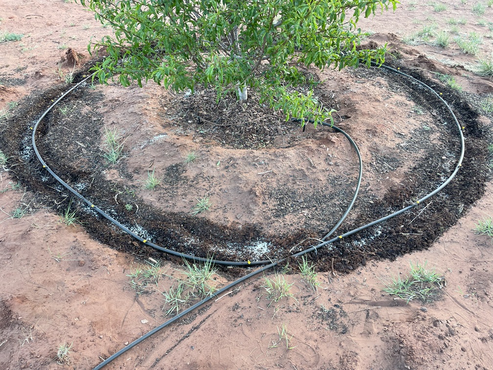 - You have to be able to spread out the water and nutrients far enough away from the tree trunk to encourage roots to spread out…and deepen.