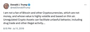#1 – In July 2019 cryptocurrency was “thin air” according to Trump. Trump went on to call BitCoin a “scam”. After announcing his reelection bid in November 2022 Trump endorsed cryptocurrency. On Oct. 15 2022 Trump took to X to declare