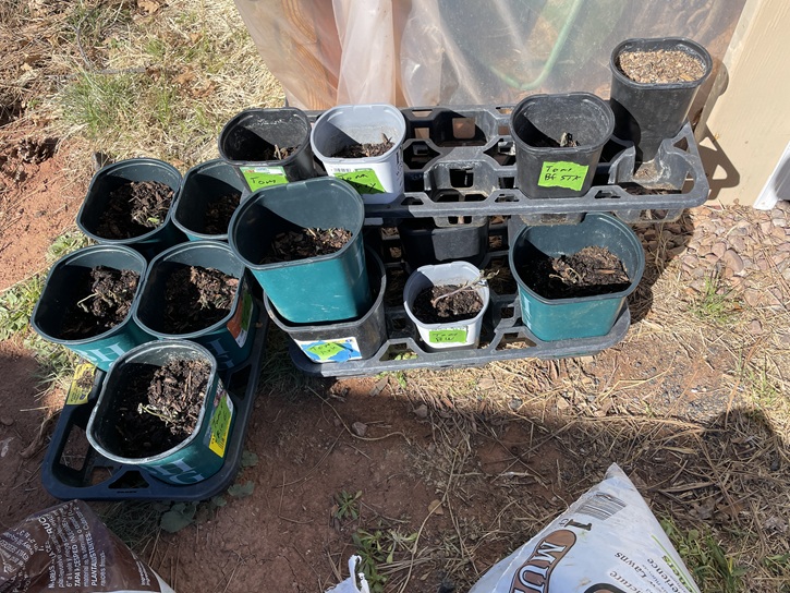 What I haven’t been talking about was the over-wintered Big Jim pepper plants. Those plants are where Hatch green chili comes from. Best green chili in the universe…period!! I was doing some research last year and found out that pepper plants are actually perennials not annuals. Well, technically they are bi-annuals. So I followed the process last fall and over the winter. I put the first two plants into one of the raised beds about 6 weeks ago and covered them anytime it looked as if it would be 38° or below. Then 3 weeks ago I put out the last two. Yeah, I was so focused on the greenhouse Friday I completely forgot about those 4 pepper plants. Oooopppppsssss…frozen dead. Fortunately I had already started 10 new plants about 4 weeks ago just in case the overwinter process didn’t work. Those little seedlings are doing just fine…about ¾” – 1” tall and safely tucked away on a heat mat in a spot with a south facing window and grow light…in the house.