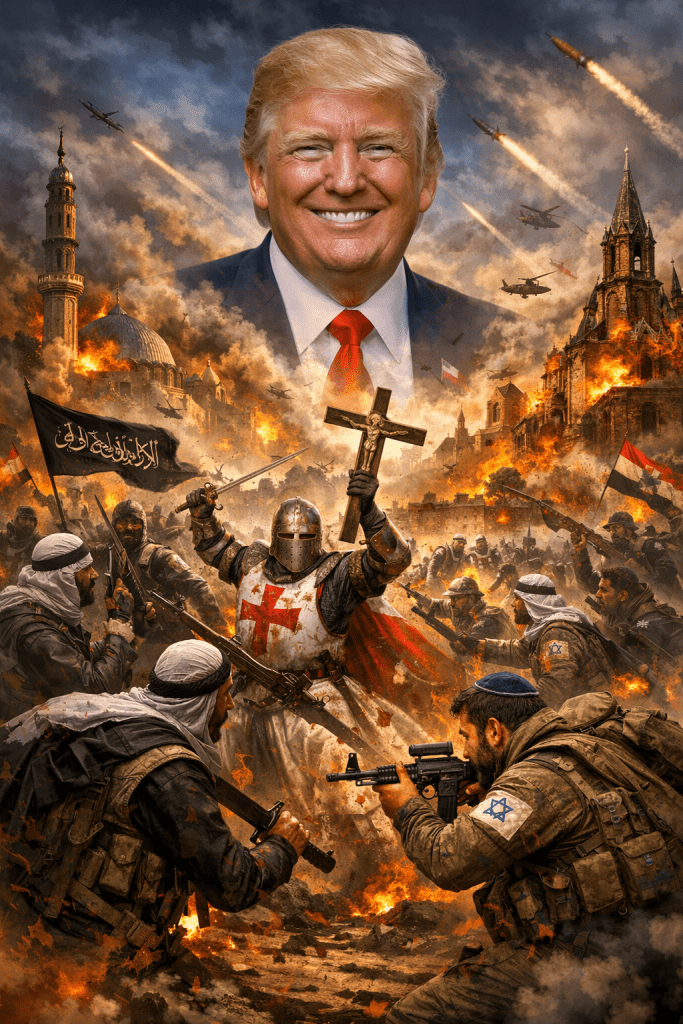What is he trying to accomplish by doing such things? A couple of folks have hinted he is trying to start a religious war. Think about it…Trump ordered the killing of Shia Islam’s leader; Supreme Leader / Grand Ayatollah Khamenei. Khamenei…was kinda like a “Pope” in Islam…would tend to piss off 250million Shia Muslims. I wonder how they felt about the US shoving a missile down his throat. But, to make sure that Trump’s war did it right, when they bombed Khamenei they also killed a daughter, a grandchild, a son-in-law, and a daughter-in-law. Hey, do we know how to kill innocent civilians or what!! And then in the process make 250million people mad at us…Go Crusades!!