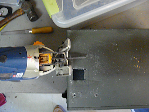 Once I had drilled out the majority of the hole I got out the saber saw with a good metal blade and squared off the hole easily. I used my flat file to clean up the edges.