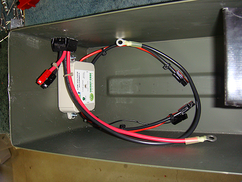 Next was to wire up the LVD with Anderson Powerpoles.The LVD only has a positive (red) wire to install in the circuit. The black wire is only to ground the unit itself. The heavy black wire you see in the picture to the left is simply to keep the whole wiring project organized and easy to understand.