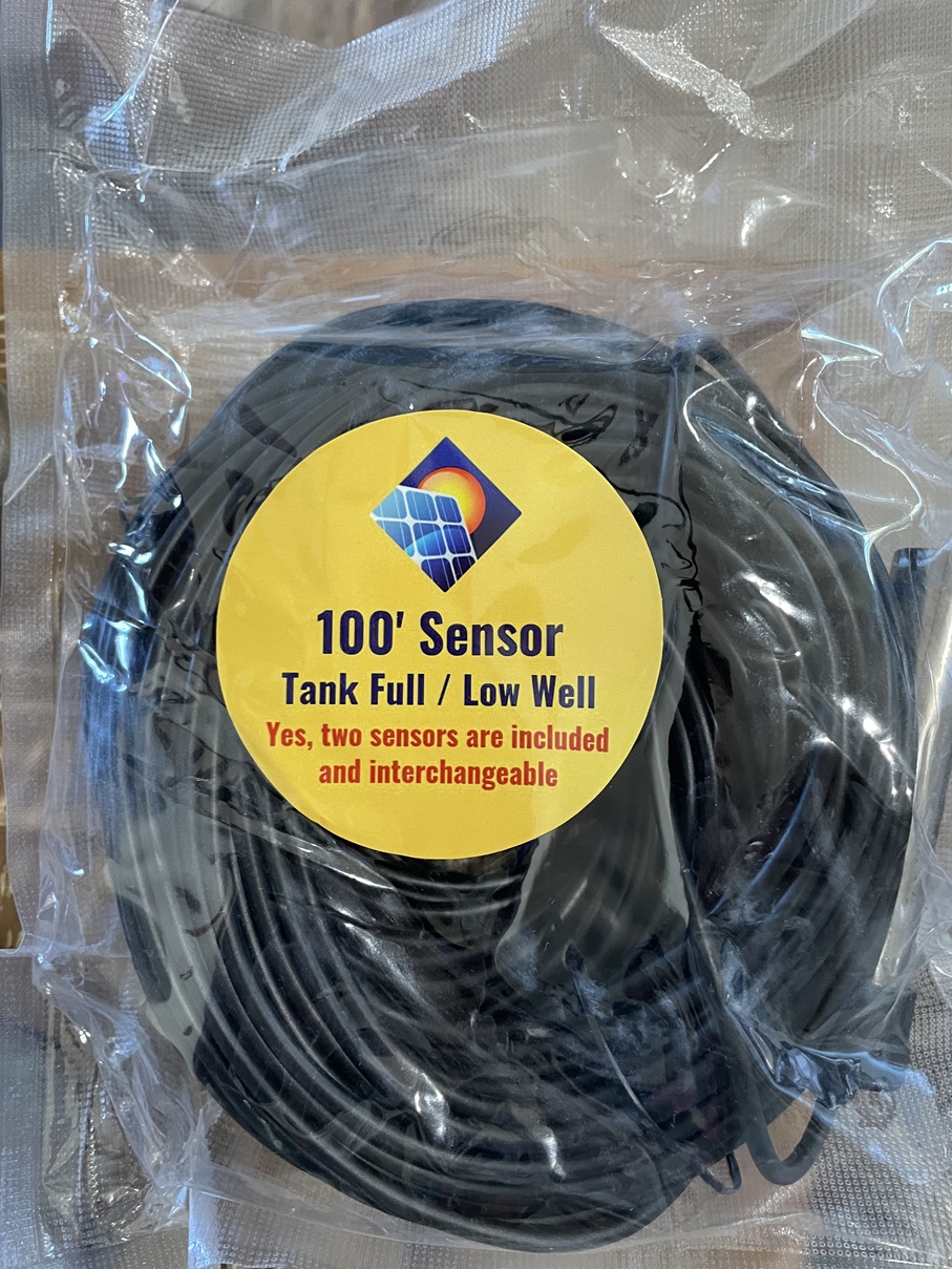 Last but not least…mislabeled or missing part…again? So here is a picture of the water level sensor. Read the label…again. “Yes, two sensors are included and interchangeable.” Yeah, I unrolled the 100′ of wire and saw the sensor, the silver probe. So where is the other “sensor”? Notice the other wording…”Tank Full / Low Well” Ah, how do they know that my well has low water level?