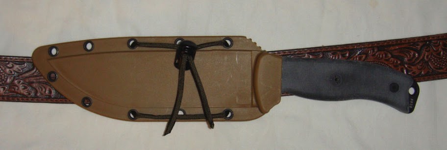 back). I was surprised at how well the knife stayed in place while mounted in either position. But, we will see how it holds up to field testing for a good carry system.