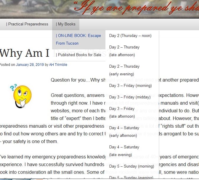 Because the information I want is buried and hard to reach…as in confusing and poorly organized. I will attempt to organize this preparedness website so it is much easier to use and to find the information that you need.