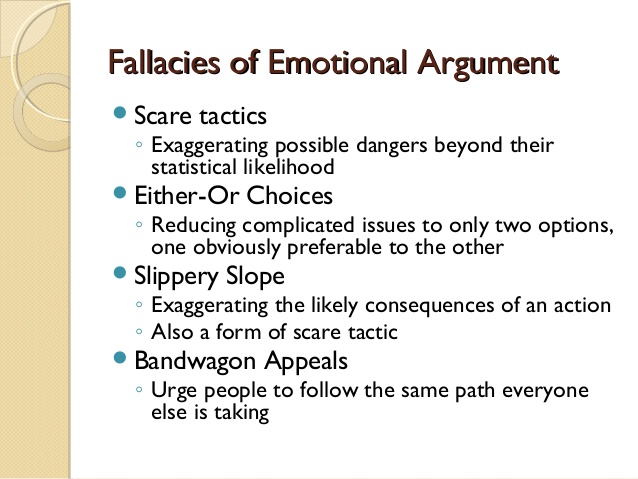 And beware of arguments filled with emotions. A solid position based on fact and logic needs no emotion. Emotion is meant to win an argument with little or no fact, without logic, and mostly upon the art of persuasion touching a person’s feelings.