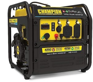 On Amazon I found a 4250 watt, dual fuel (gasoline & propane) inverter style (clean power) Champion generator