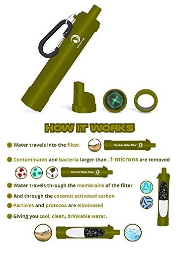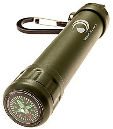 Purifier straw is 7.5 inches long and weighs less than ½ pound.Plus the straw comes with a carabiner, signalling mirror, tourniquet / extension tube, bear whistle, and compass.