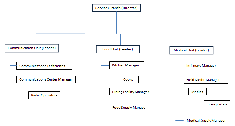 Logistics Sections consists of two Branches; “Support” and “Service”. Each Branch can be led by a Branch Director as needed based on size, Span of Control and/or other organizational requirements or needs.