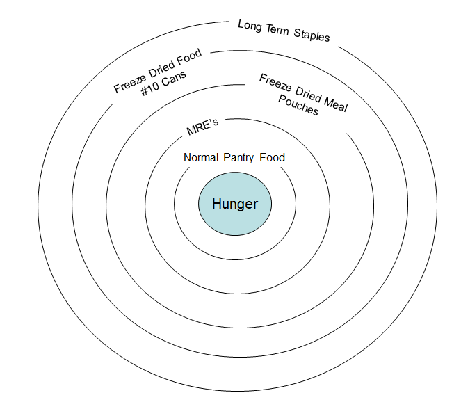 To succeed in this preparedness effort you need to have multiple layers of food storage to keep hunger as far from you and your family as possible. Each layer defends against a specific food shortage crisis or need. What types of food shortage crisis are there?