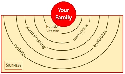It may be hard to recognize the “layers” involved with sickness, but you can see them. As always these prevention steps work from the individual outward; small scale to large scale.