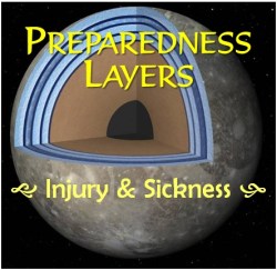 Second, sickness – This isn’t a cleanly defined subject area. Sickness can come from multiple directions under various conditions. We can talk about sanitation when going to the bathroom. We can include food preparation protocols. We could talk much larger in the nutrition area. But for this discussion of “layers” I simply want to point out some of the most immediate and troublesome threats/risks.
